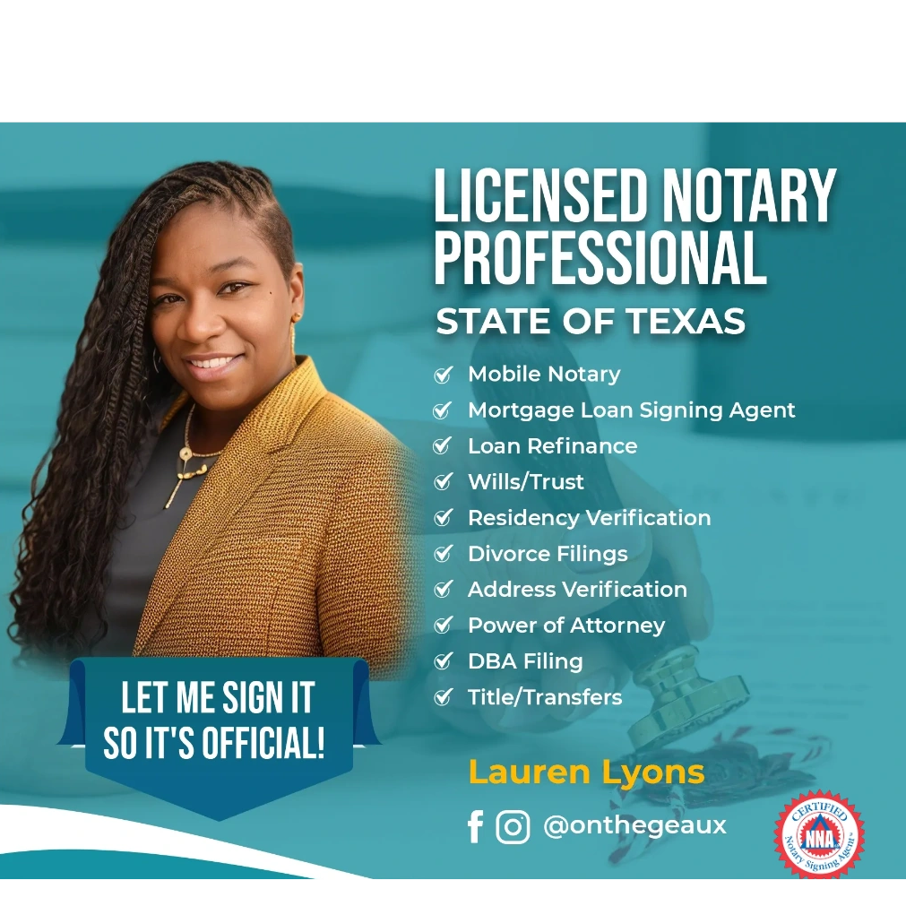 Notary pricing is per State of Texas Commission guidelines and IRS Regulations for travel reimbursement.